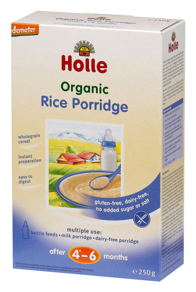 Rice porridge is generally given as a baby’s first cereal as it is easy to digest and gluten free.