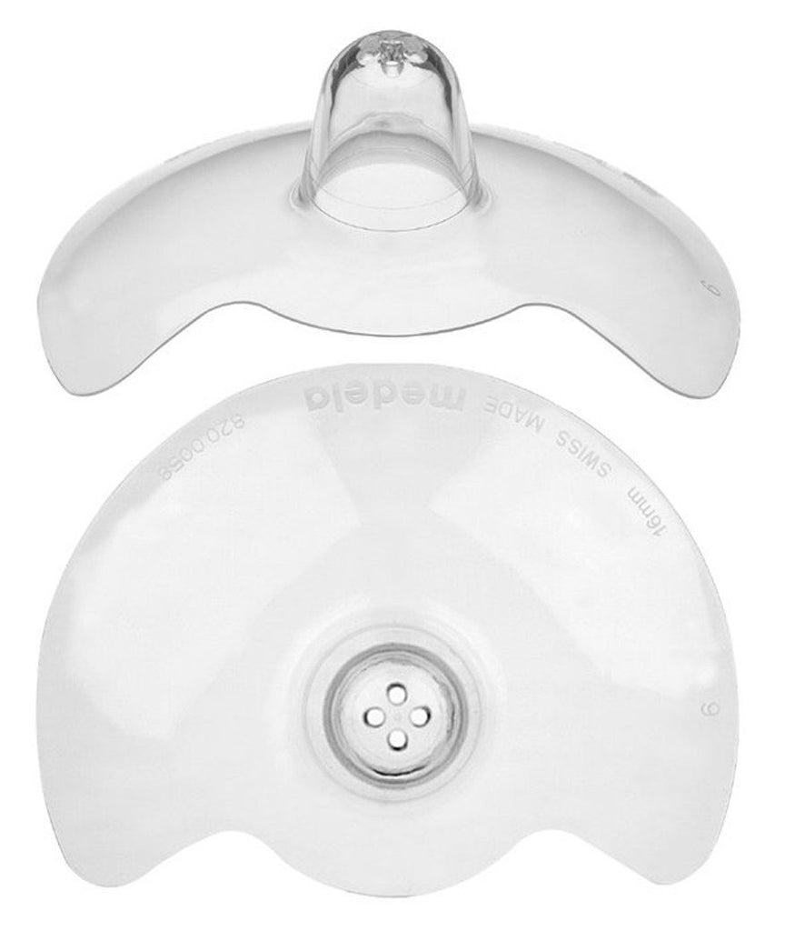 Medela Contact Nipple Shields are designed for temporary use when breastfeeding with sore, cracked, flat or inverted nipples. Made of ultra thin soft silicone, they have an open section to enable baby to maintain skin contact and stay in contact with its mother's familiar scent. Made of transparent flexible silicone that is comfortable to wear, they are odourless and tasteless. A carry case is included for hygienic storage and transport.