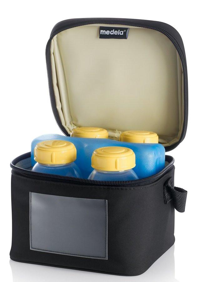Medela Cooler Bag you can transport up to four bottles of breastmilk safely. The insulation on the inside of the bag will keep the expressed breastmilk cool for longer.